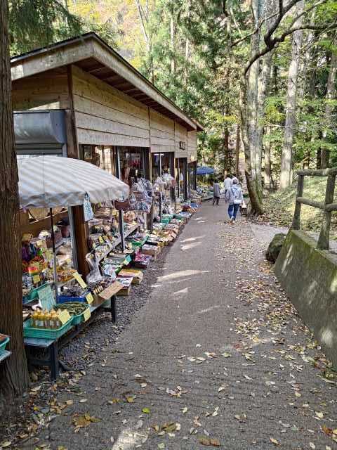 訪問したのは11月初旬。紅葉が始まった時期で沢山の観光客が訪れています。今回、駐車場は吹割渓谷の一番下流にある市営駐車場を利用しました。無料なのですが十数台のみなのですぐ満車になってしまうのが難点。途中のお土産屋さんも無料とうたってはいますが、さすがに帰りに何かお土産を買わないわけにはいきませんね。
