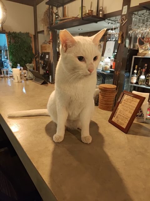 カウンターにいらしたのは「つくね」ちゃん。私たちが入るとパトロールに出かけました。