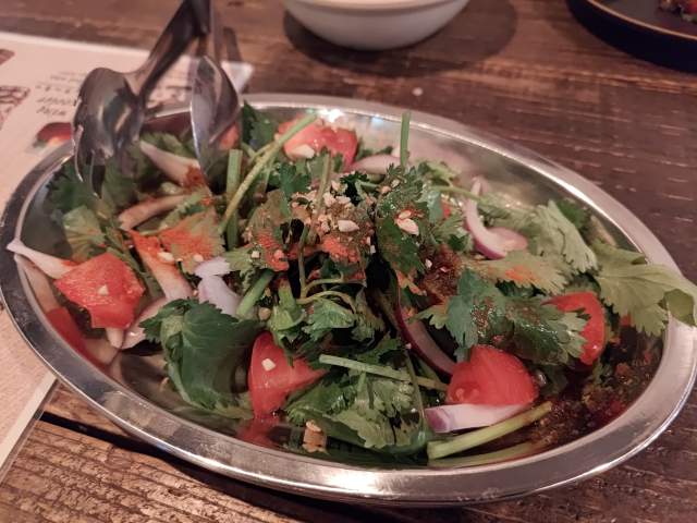 パクチーサラダ。パクチーが苦手な人でもいけそうです。