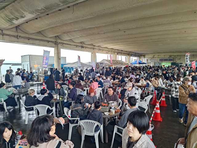 早起きして朝9時頃についたのですが、会場の大原漁港はものすごい賑わい。伊勢海老を食べようと思ってきたのですが、席も空いていなくて大変です。