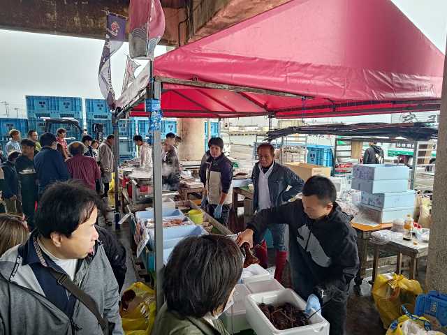 特徴 : 港の朝市を散策。美味しい伊勢海老を堪能しました。