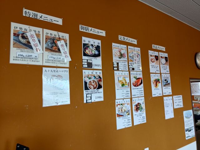 そこでどこかお店に入って食べようと思い、漁協直営の「いさばや」さんを覗いたところ伊勢海老は売り切れの張り紙。そうですよね、漁協は朝市で売っているのですから。