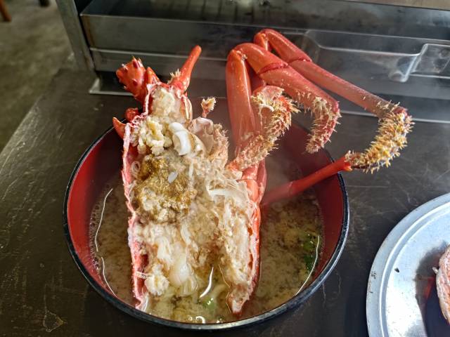 ああ、身の締まり具合、歯ごたえ、甘さ、最高ですね。カニ用のフォークやハサミを使って足の中の身まで頂きました。とても美味しい。お刺身の頭の部分はお味噌汁にしていただきます。これがまた出汁が出て最高においしいのです。ごちそうさまでした。