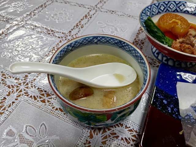 食事の途中でこちらの宿の名物料理のグリーンカレーが出ました。タイ料理店で食べる「ゲーン・キャオ・ワーン」とはちょっと違ってスープカレーのようです。ご飯と会いますね。ごちそうさまです。