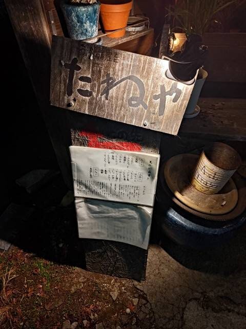 余談なのですが、こちらのお店の左に「たねや」と書かれた看板らしき物があり、なぜかおでんなどのメニューが掛けられています。これは一体何なのでしょうか?。
