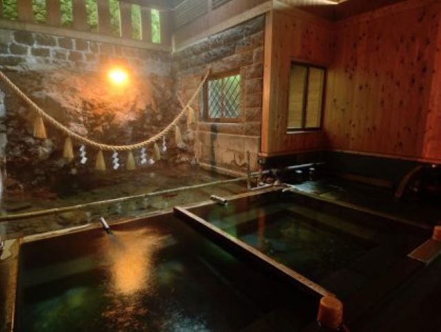 特徴・湯使い : しめ縄が張られた源泉から湧き出して湯舟へ流れ込む温泉はとても神秘的です 源泉かけ流し